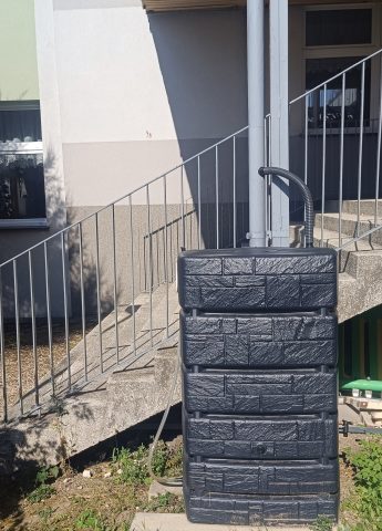 Zbiornik na deszczówkę w szkolnym ogrodzie botanicznym W ramach projektu „Zielona EkoSfera – Edukacja Ekologiczna w Praktyce” realizowanego w konkursie grantowym „Budujemy świadomość – chronimy środowisko”, w naszym szkolnym ogrodzie botanicznym został zamontowany zbiornik na deszczówkę. Dzięki temu rozwiązaniu uczniowie mogą na co dzień obserwować, jak w prosty sposób można wykorzystywać naturalne zasoby…