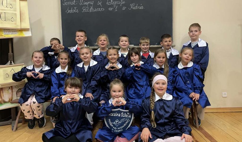 Czytaj dalej Wycieczka do sadu.Dnia 23 września, w pierwszy dzień kalendarzowej jesieni, uczniowie oddziału 1 b odwiedzili Muzeum Wsi Mazowieckiej w Sierpcu. Odbyli tam lekcję kaligrafii, która to poprowadziła ich w podróż w czasie, przenieśli się do szkoły z połowy XX wieku. W atmosferę wprowadziło już samo wyposażenie izby szkolnej: czarna tablica z zajęczą…