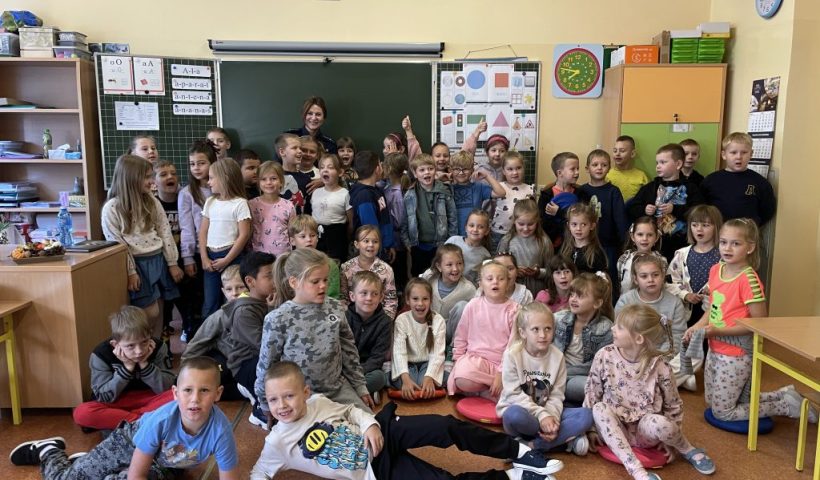 Dnia 26 września 2025 r. w ramach akcji „Bezpieczna droga do szkoły” odbyło się spotkanie uczniów klas pierwszych z wyjątkowym gościem funkcjonariuszką Komendy Policji w Kutnie Katarzyną Wasiak. Celem spotkania było przypomnienie zasad bezpieczeństwa w szkole i poza nią. Policjantka rozmawiała z dziećmi o podstawowych zasadach bezpieczeństwa w ruchu…