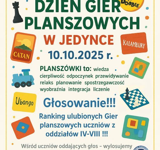 W Tygodniu Gier Planszowych w Jedynce uczniowie mieli okazję spędzać czas, grając ze swoimi koleżankami i kolegami w ulubione gry planszowe. Do wspólnej zabawy dołączyły również świetlica i biblioteka szkolna, dzięki czemu przez cały tydzień w naszej szkole panowała radosna i pełna emocji atmosfera. 10 października odbyło się głosowanie…