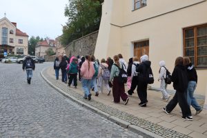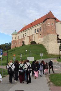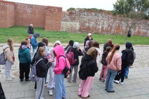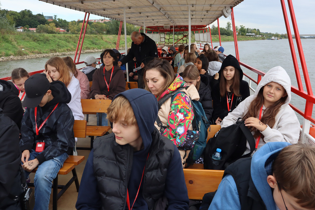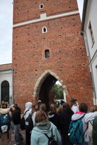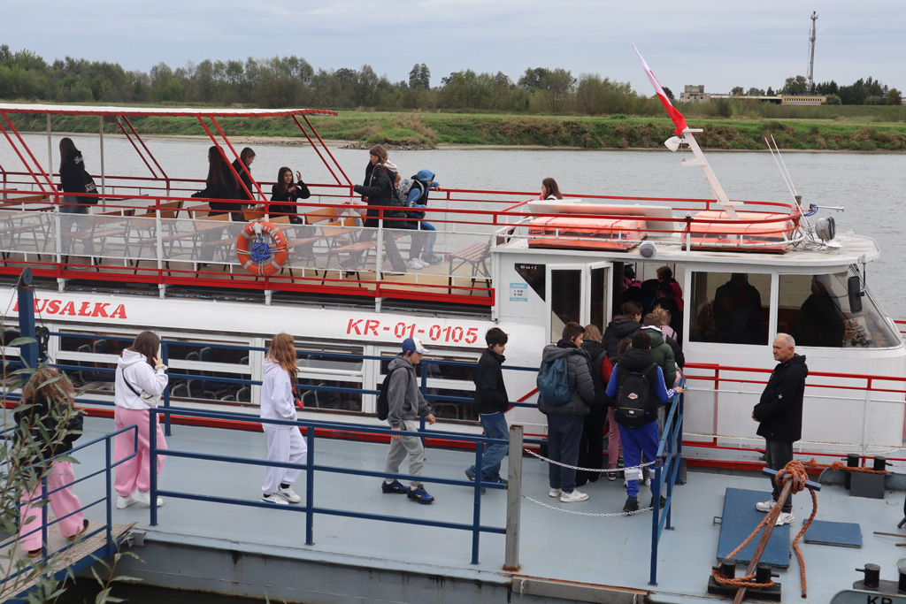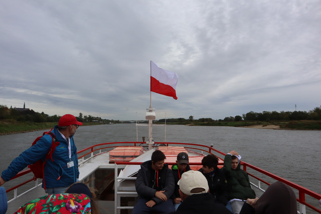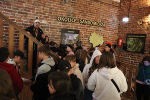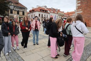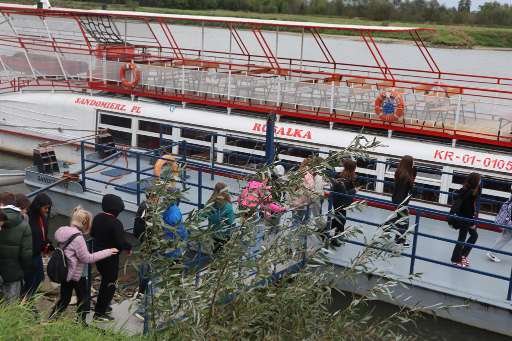 Od 24 września uczniowie z odziałów 7C, 5B, 5D, 6C i 5C rozpoczęli wspólną przygodę w Sandomierzu. Pogoda przywitała nas pięknym słońcem, a my zaczęliśmy rejs po Wiśle podziwiając panoramę Sandomierza. Natępnie zwiedzilśmy podziemia tego wspaniałego miasta, Pan przewodnik opowiedział legendę pokonania Tatarów przez Halinę Krępiankę, która uratowała mieszkańców przed kolejnym zniszczeniem, a następnie podziwialiśmy panoramę miasta z tarasu widokowego Bramy Opatowskiej. Jest uważana za najlepiej zachowaną bramę miejską w Polsce. Ma 32 metry wysokości i wystarczy tylko kilka kroków po rynku, aby ją dostrzec. Jej wybudowanie zostało zlecone przez Kazimierza Wielkiego około 1362 roku, a w XVI wieku na jej dachu domontowano attyki (to taki dekoracyjny murek). Były one dodatkowym zabezpieczeniem przed wrogim ostrzałem. W dawnych czasach brama pełniła funkcje przede wszystkim obronne.Do pokonania mieliśmy około 130 schodów. Podziwialiśmy też Ucho Igielne – jedyną zachowaną furtę, spośród dwóch niegdyś istniejących w systemie murów obronnych. Przez furtę komunikowali się z sobą bracia z dwóch klasztorów dominikańskich; jednego położonego poza murami miasta i drugiego, wewnątrz murów obronnych. Przez Ucho Igielne doszliśmy do wąwozu świętojakubskiego, którym wyszliśmy wprost na kościół świętego Jakuba. Swą kilkugodzinną wędrówkę zakończyliśmy w wąwozie Królowej Jadwigi, który zrobił na nas ogromne wrażenie.