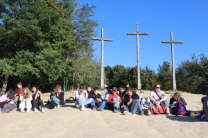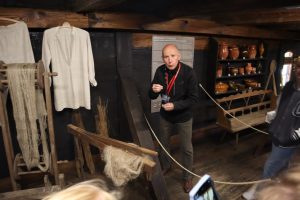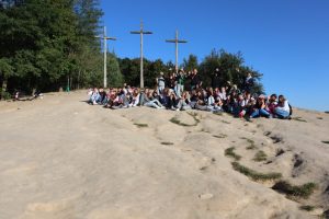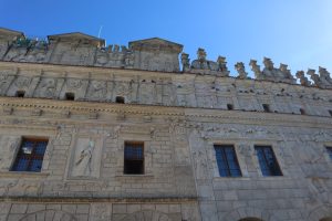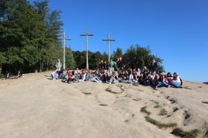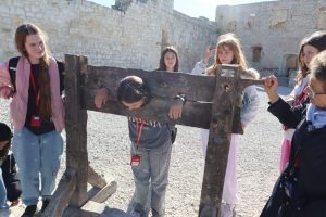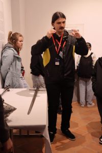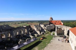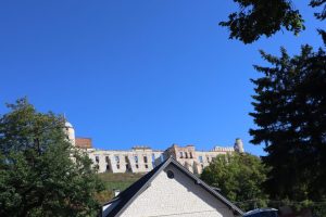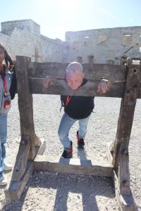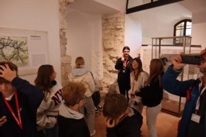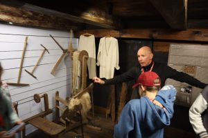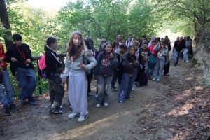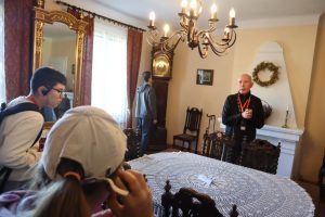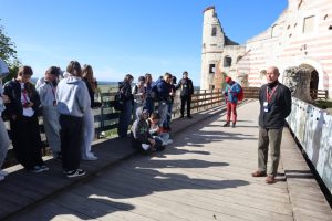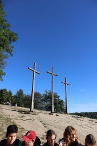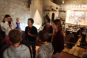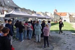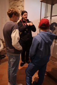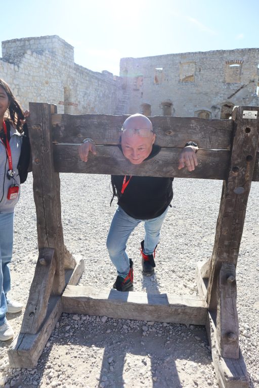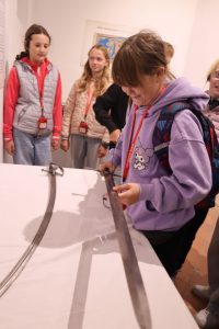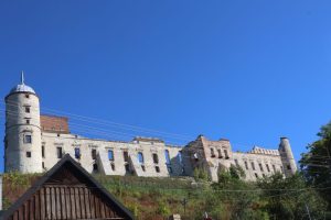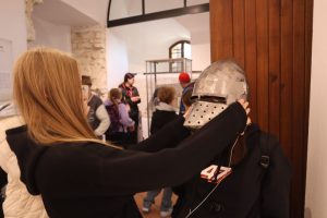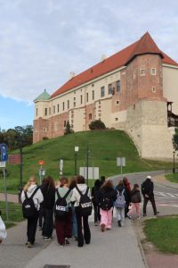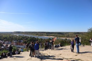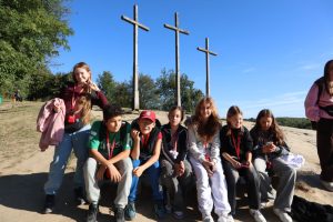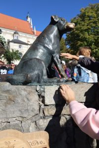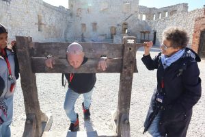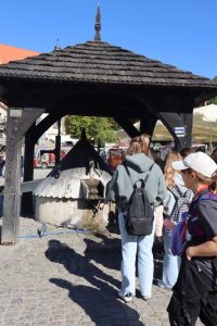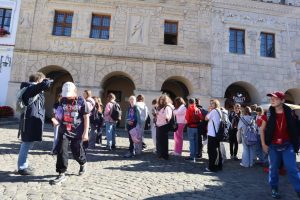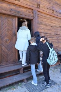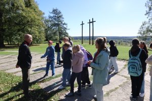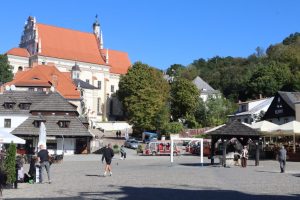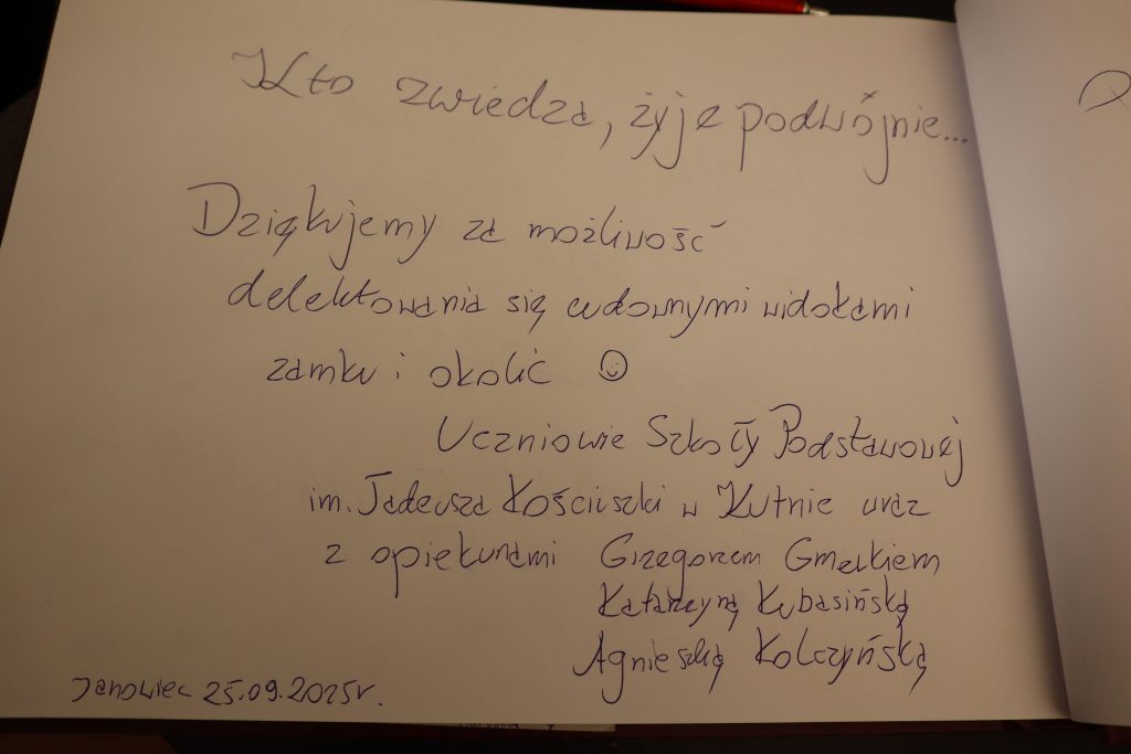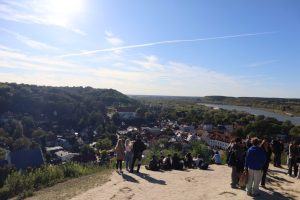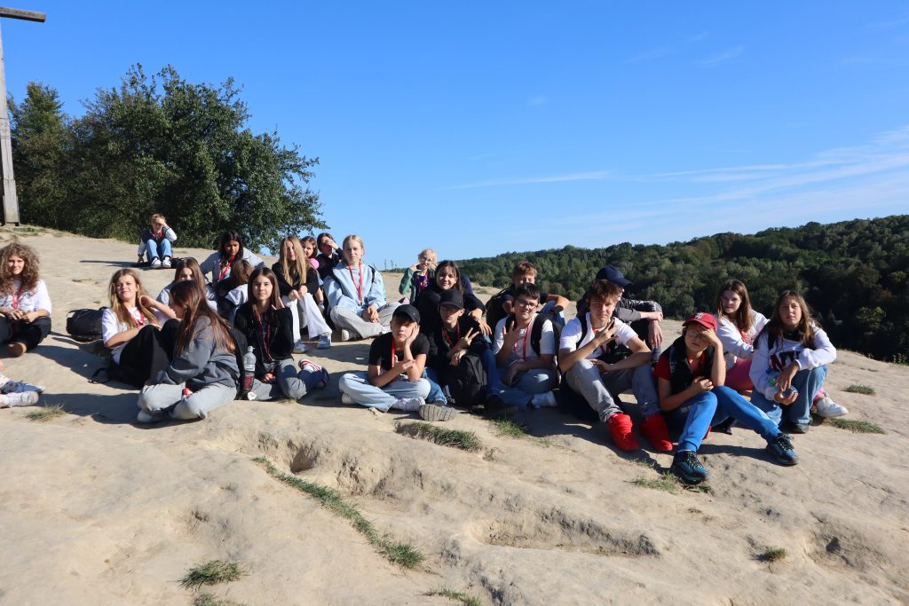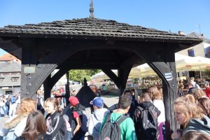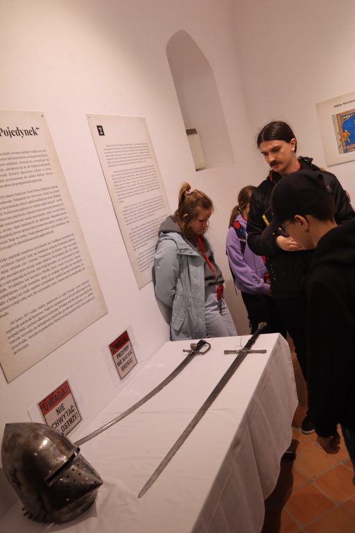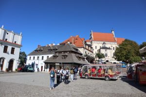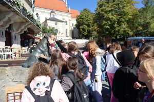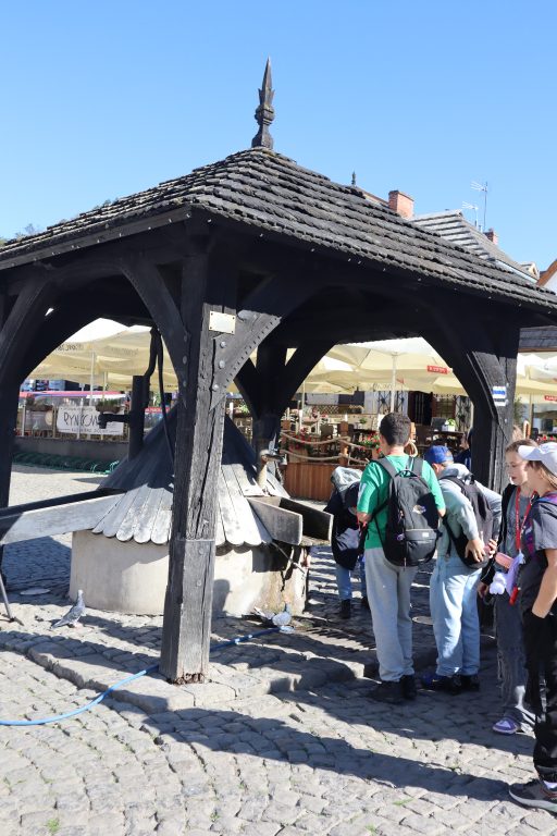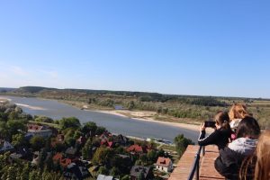 Drugi dzień naszej podróży to piękne wrażenia po spacerze w zamku w Janowcu, gdzie mogliśmy poczuć się jak właściciele ziemscy lub rycerze. Dowiedzieliśmy się, kto był ostatnim właścicielem zamku, zanim posiadłość przeszła w ręce państwa, kto rozebrał ostaecznie mury, jak wyglądały pojedynki rycerskie, dlaczego Czarna Dama straszy nocami i kto może być zaczarowany przez czarnego barana… Odwiedziliśmy również typowy dwór szlachecki z XVII wieku oraz spichlerz, w którym poznaliśmy zwyczaje, obyczaje i przesądy wsi polskiej. Przerywnikiem w zwiedzaniu były podchody w labiryncie zieleni, gdzie uczestnicy wycieczki szukali okna, z którego rzuciła się Czarna Dama – córka Lubomirskiego, ówczesnego właściciela zamku. Dowiedzieli się również jak nazywają się zioła stosowane w wiejskim ziołolecznictwie – bawili się w memory i kodowali nazwy ziół z tamtych czasów. Następnym punktem na naszej mapie był Kazimierz Dolny – miasto, które otrzmało nazwę na cześć króla Kazimierza Wielkiego, który “zastał Polskę drewnianą, a zostawił murowaną”. Ufundował dla Polski aż 52 zamki, więc dbał bardzo o bezpieczeństwo swoich poddanych. Na dodatek zakochał się w Żydówce – Esterze, którą poślubił wbrew woli poddanych i zbudował dla niej i jej rodziny piękny zamek w Bochotnicy. W Muzeum Sztuki Złotniczej mieliśmy okazję oglądać piękne eksponaty ze srebra – biżuterię, naczynia, sztućce, czy przedmioty codziennego użytku oraz przedmioty sakralne. Dowiedzieliśmy się, że z 1 grama złota  można wyprodukować 3 km drucika. Z wieży zamkowej, na którą prowadzi 150 schodów podziwialiśmy panoramę Kazimierza. Pani przewodnik opowiedziała nam również legendę o pomniku psa Urwisa stojącego na Kazimierskim Rynku, który regularnie w okresie letnim przypływał przez Wisłę do miasteczka, by tu spędzsć lato i być maskotką mieszkańców. Legenda głosi, że pogłaskanie posągu przynosi szczęście i na pewno wróci się w to samo miejsce. Kolejna legenda dotyczy kogucika – maskotki miasteczka – dotyczy ona diabła, ktory postanowił zjeść wszystkie koguty. W końcu został tylko jeden kogut. Był stary i bardzo mądry. Aby ocalić życie, postanowił przechytrzyć diabła i ukrył się wraz z piękną kurą w przygotowanej wcześniej kryjówce. Diabeł użył całej swojej mocy, aby odnaleźć ptaka, ale zakonnicy mu w tym przeszkodzili poświecając miejsce ukrycia ptaka. Ocalony kogut wyszedł z nory i dumnie spacerował ulicami miasteczka. Na pamiątkę tego wydarzenia w Kazimierzu zaczęto wypiekać koguty z drożdżowego ciasta, które dziś są turystyczną atrakcją i obowiązkowym przysmakiem podczas wizyty w tym urokliwym miasteczku. Z innej perspektywy, również z wysokości, oglądaliśmy panoramę miasta z Góry Trzech Krzyży. Trzy nawiązujące do Golgoty krzyże postawiono w 1708. Miały one upamiętniać liczne ofiary zarazy morowej (cholery), która miała miejsce na tych terenach. Znajdujące się tam obecnie krzyże pochodzą z 1852, a większość napisów z 1930. Swą wędrówkę zakończyliśmy spacerem po uroczym Starym Rynku, na którym stoi zabytkowa studnia z XIX wieku, jeden z najważniejszych symboli renesansowego miasteczka. Jedna z Pań, nasza wędrowniczka górska, zaszczepiła w dzieciach zainteresowanie kolekcjonerstwem pieczątek turystycznych, które skrzętnie zbiera w swoich kolorowych zeszycikach w Punktach Informacji Turystycznej. Dzięki temu wszyscy wiemy, gdzie Pania Kasia odwiedza piękne miejsca. Jedynie na Górze Trzech Krzyży pieczątek nie zdobyła, co było dla niej ogromnym rozczarowaniem.
