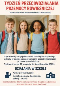 - Informację, na temat podjętych przez szkołę działań w celu rozwiązania problemu przemocy rówieśniczej.