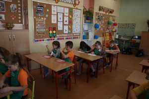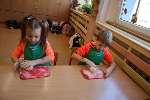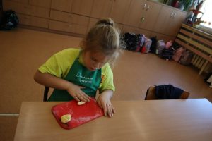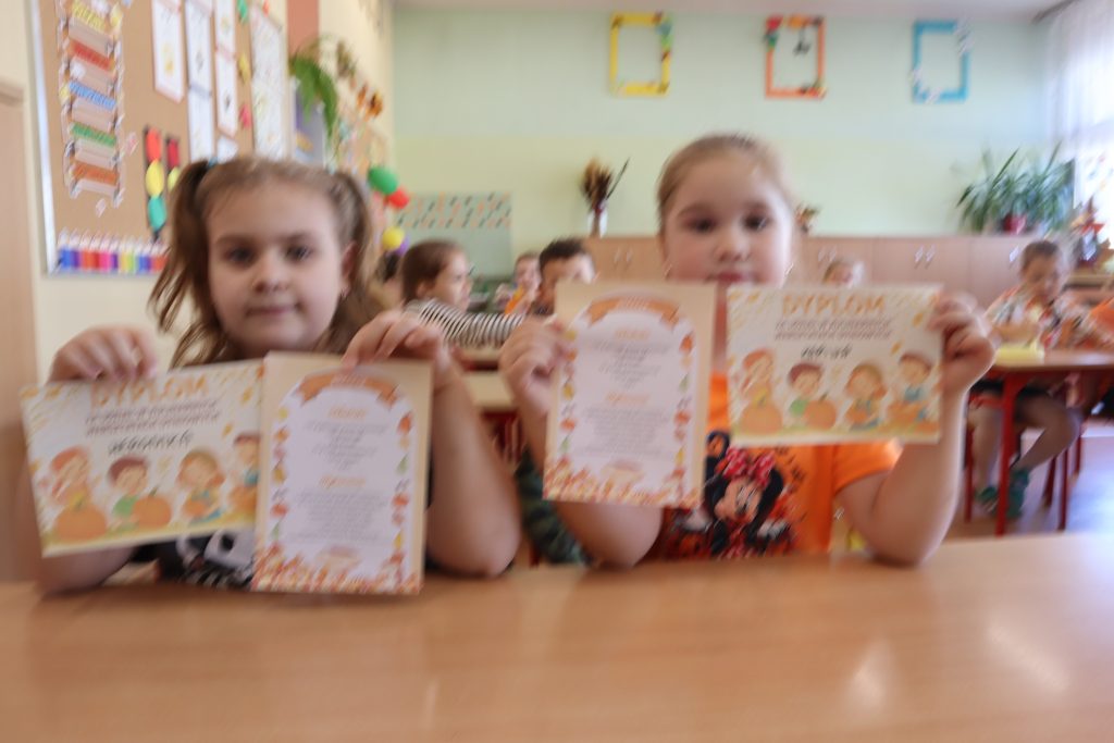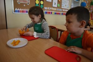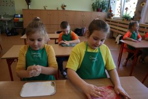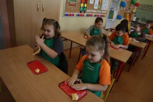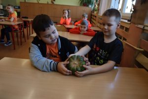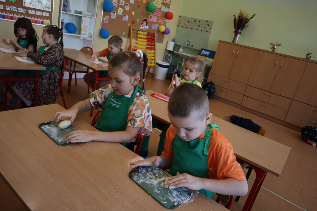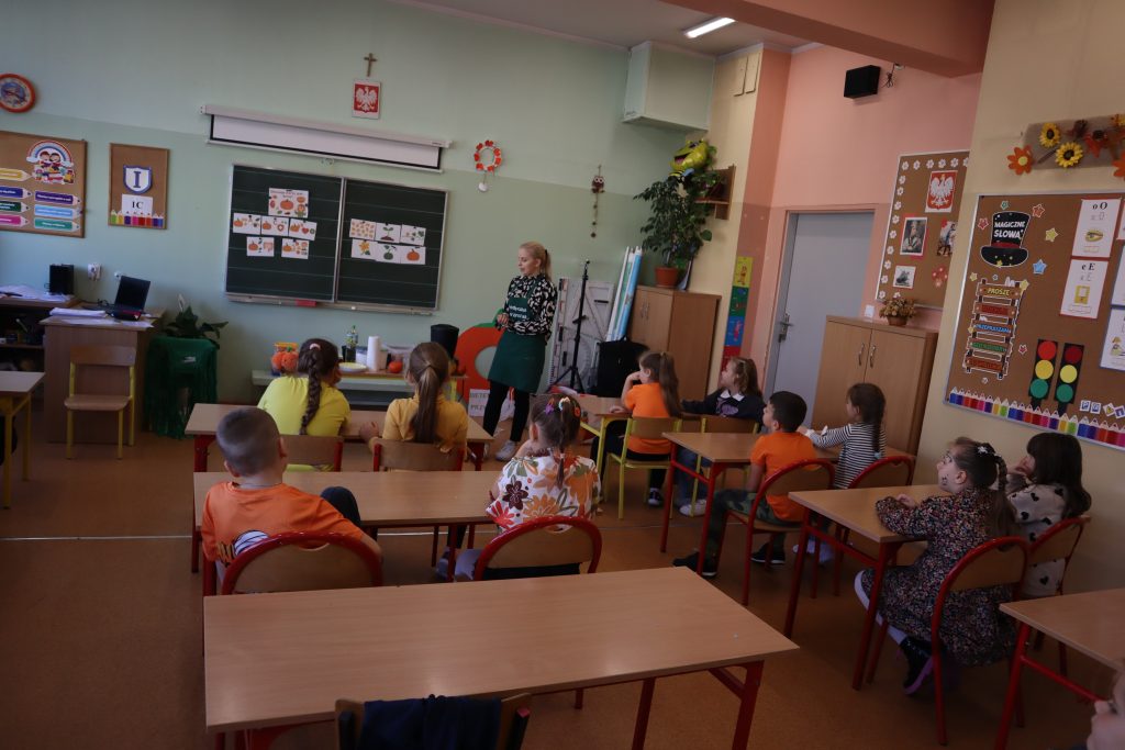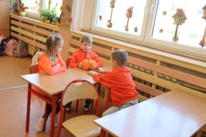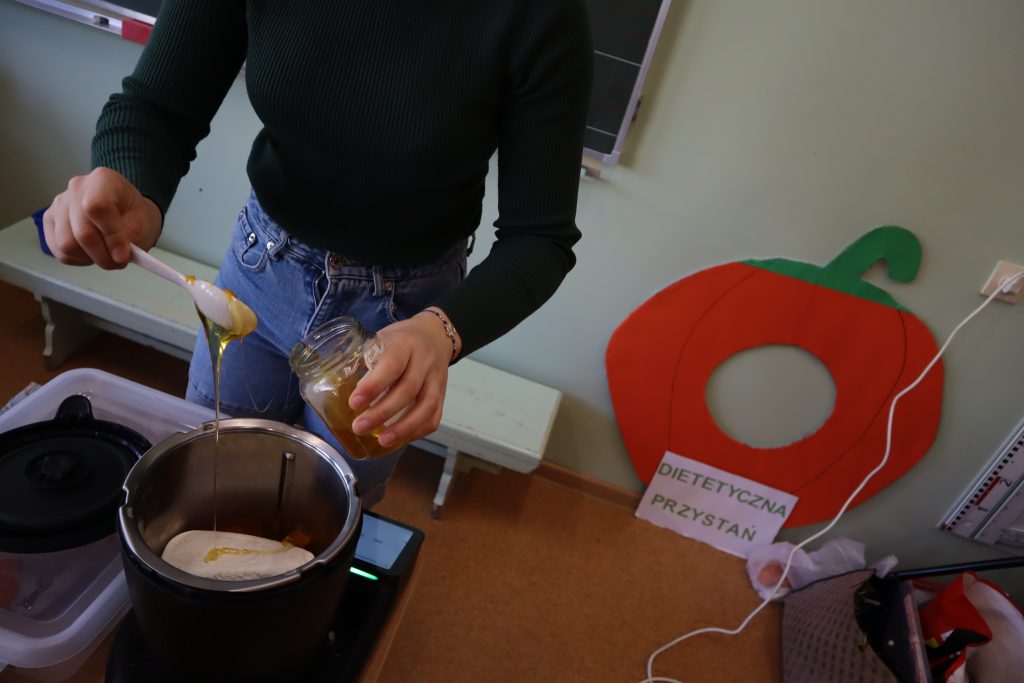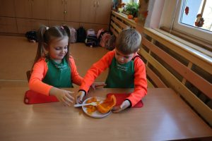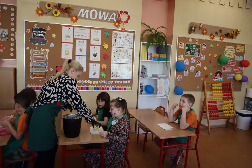 Dynia to bardzo zdrowe, urodziwe, wdzięczne i łatwe do współpracy warzywo. Październik jest idealnym miesiącem , by poznać ją bliżej. Znajduje ona zastosowanie w sztuce kulinarnej, ponieważ ma wiele wartości odżywczych, a także stała się pięknym elementem dekoracyjnym naszych domów, balkonów i ogrodów. Tak wszechstronne warzywo miało swoje “małe święto”  w oddziale 1c. To typowo jesienne święto obchodzone było po raz pierwszy  w naszym oddziale. W tym dniu sala 905 zamieniła się w dyniową krainę, w której królował kolor pomarańczowy oraz żółty.  W niezwykłej scenerii dzieci zostały powitane zabawną rymowanką „Dynia wita Was, na imprezkę czas ‘’. Na zajęciach gościliśmy dietetyka żywieniowego oraz edukatora  żywności z Dietetycznej Przystani. Celem spotkania było rozwijanie kreatywności, integracja, nauka o jesiennych warzywach, wspólna zabawa. Uczniowie rozmawiali na temat zdrowych owoców i warzyw oraz dowiedzieli się, które produkty nie są korzystne dla zdrowia. Pani dietetyk w ciekawy sposób zaprezentowała im, jak rośnie dynia, jakie są jej odmiany oraz jakie wartości odżywcze posiada. Poznali także wiele ciekawostek o dyni. Największym zainteresowaniem cieszyły się jednak dyniowe warsztaty kulinarne, których celem było wspólne przygotowywanie kopytek dyniowych. Dzieci z ogromnym zaangażowaniem i radością wykonywały zadania kulinarne, ucząc się przy tym samodzielności i współpracy. Dzięki tym zajęciom miały okazję nie tylko poznać różnorodność smaków  i możliwości kulinarnego wykorzystania dyni, ale także dowiedzieć się więcej o jej pozytywnym wpływie na zdrowie. Radość z własnoręcznie przygotowanego dania była równie duża, co apetyt na nie. Nawet najwięksi sceptycy uznali, że dynia jest super! Warsztaty pozwoliły uczestnikom nie tylko rozwinąć swoje umiejętności kulinarne, ale także docenić wartość tego wyjątkowego warzywa. Dynia zachwyca, inspiruje  i uczy – warto, by częściej gościła na naszych stołach. Nie zabrakło również zdjęć   w „fotobudce dyniowej”, które upamiętniły ten radosny dzień. Na zakończenie każde dziecko otrzymało dyplom uczestnictwa w dyniowych warsztatach kulinarnych oraz przepis na kopytka dyniowe. Dzień  był pełen wrażeń, nowych smaków i cennych informacji o zdrowym odżywianiu. Uczestnictwo w warsztatach kulinarnych pomogło dzieciom wzmocnić wiarę we własne siły oraz nauczyć się samodzielności. Dziękujemy Paniom z Dietetycznej Przystani za wspólnie spędzony czas.