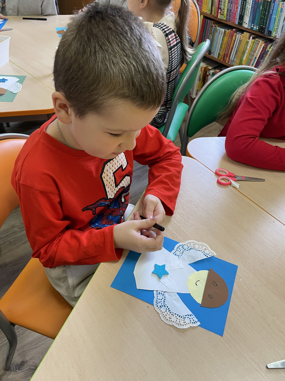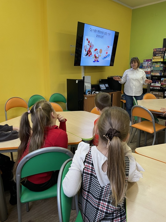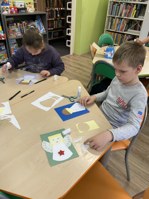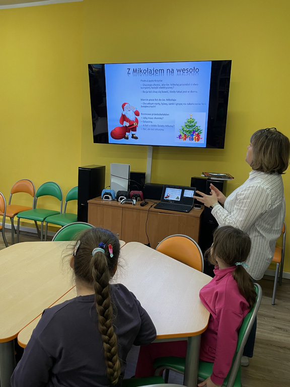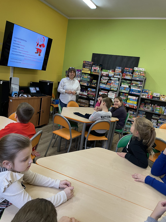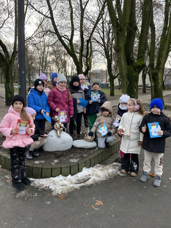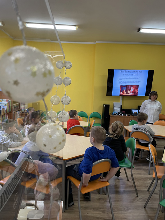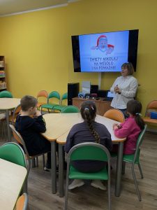 03.12.br.oddział Ic udał się do MiPBP na, utrzymane w świątecznym już nastroju, zajęcia biblioteczne. Na wstępie poznaliśmy charakterystykę Świętego Mikołaja i trochę ciekawostek z Jego historii. Dowiedzieliśmy się, że obecny wizerunek Mikołaja, został stworzony przez amerykańskiego artystę Freeda Mizena, na potrzeby reklamy Coca Coli. Następnie wspólnie szukaliśmy odpowiedzi na różne pytania, np.: Co robi Mikołaj, gdy nie pracuje?, Skąd Mikołaj wie o czym marzysz?, Skąd się wzięły renifery w zaprzęgu Mikołaja, skoro on sam pochodzi z Turcji? Dowiedzieliśmy się, że początkowo reniferów było 8 (poznaliśmy ich imiona). Najbardziej znany Rudolf Czerwononosy dołączył do tej ósemki dopiero w 1939r.    A zastanawialiście się, w jaki sposób Mikołaj wchodzi do Waszych mieszkań i domów? Okazuje się, że tylko On posiada magiczny klucz, który pasuje do wszystkich zamków w drzwiach.  Poznaliśmy również legendę o świątecznych skarpetach, w których już 06.12. wielu z nas na pewno  cos znajdzie od Mikiego. Następnie przenieśliśmy się wirtualnie do różnych państw świata i poznaliśmy ich tradycje świąteczne. Wiecie, że np. we Włoszech to nie Święty Mikołaj roznosi prezenty tylko złośliwa wróżka – La Befana. W Hiszpanii natomiast zajmują się tym Trzej Królowie,  w Niemczech Frau Berta a w Danii postać zwana Julemanden. Tę część zajęć zakończyliśmy z Mikołajem na wesoło. Były żarty, dowcipy i śmieszne historie związane z nadchodzącymi świętami. W części praktycznej wykonaliśmy piękne kartki z aniołkami. Po wyjściu z biblioteki udaliśmy się na spacer, by odpocząć wszystkimi zmysłami. Podziwialiśmy piękne Kutnowskie Lwiątka i obserwowaliśmy zmiany w przyrodzie, która już wolniutko przygotowuje się do zimy.