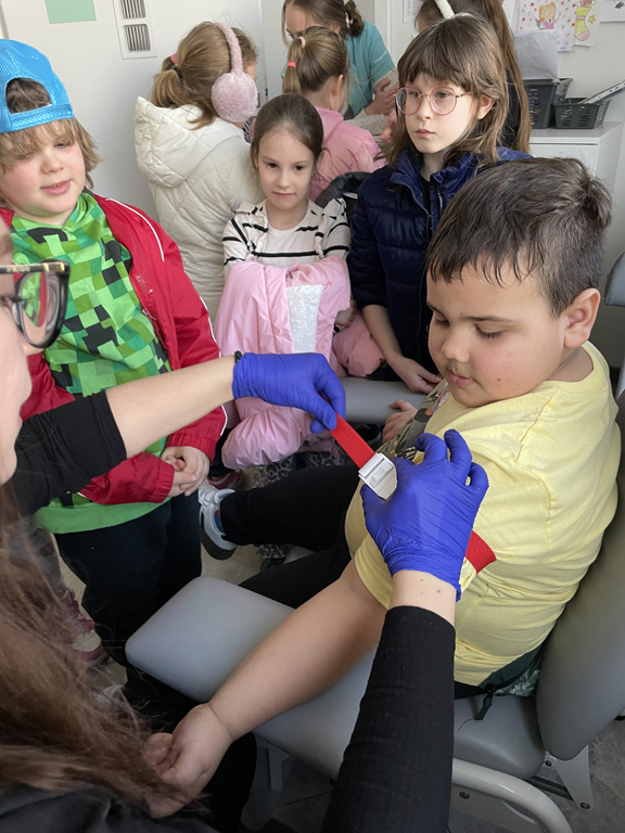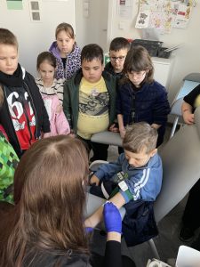 Farmaceuta wyjaśnił nam, że jego praca to nie tylko wydawanie leków, ale przede wszystkim ogromna odpowiedzialność za zdrowie pacjenta, doradztwo i precyzja w sporządzaniu preparatów recepturowych. Analityk medyczny pokazał, jak wielką rolę w procesie leczenia odgrywają wyniki badań. Dowiedzieliśmy się, jak ,,czytać” krew  i dlaczego praca w laboratorium przypomina czasem śledztwo detektywistyczne. Poznaliśmy różnice w badaniach diagnostycznych, które pomagają lekarzowi zdecydować, czy potrzebny jest antybiotyk, czy wystarczą domowe sposoby. Mieliśmy również okazję zobaczyć profesjonalny sprzęt laboratoryjny i dowiedzieć  się, jak bezpiecznie pobiera się materiał do badań i dlaczego ważne jest przyjście na badanie na czczo.