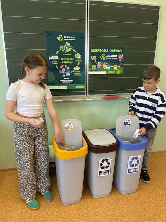Ponadto uczniowie klas pierwszych uczestniczą w projekcie edukacyjnym Łowców odpadów”, w ramach którego realizują różne zadania ekologiczne mające na celu uświadomienie najmłodszym jaka ważna jest prawidłowa segregacja odpadów- nieodłączny element codziennego życia każdego z nas.